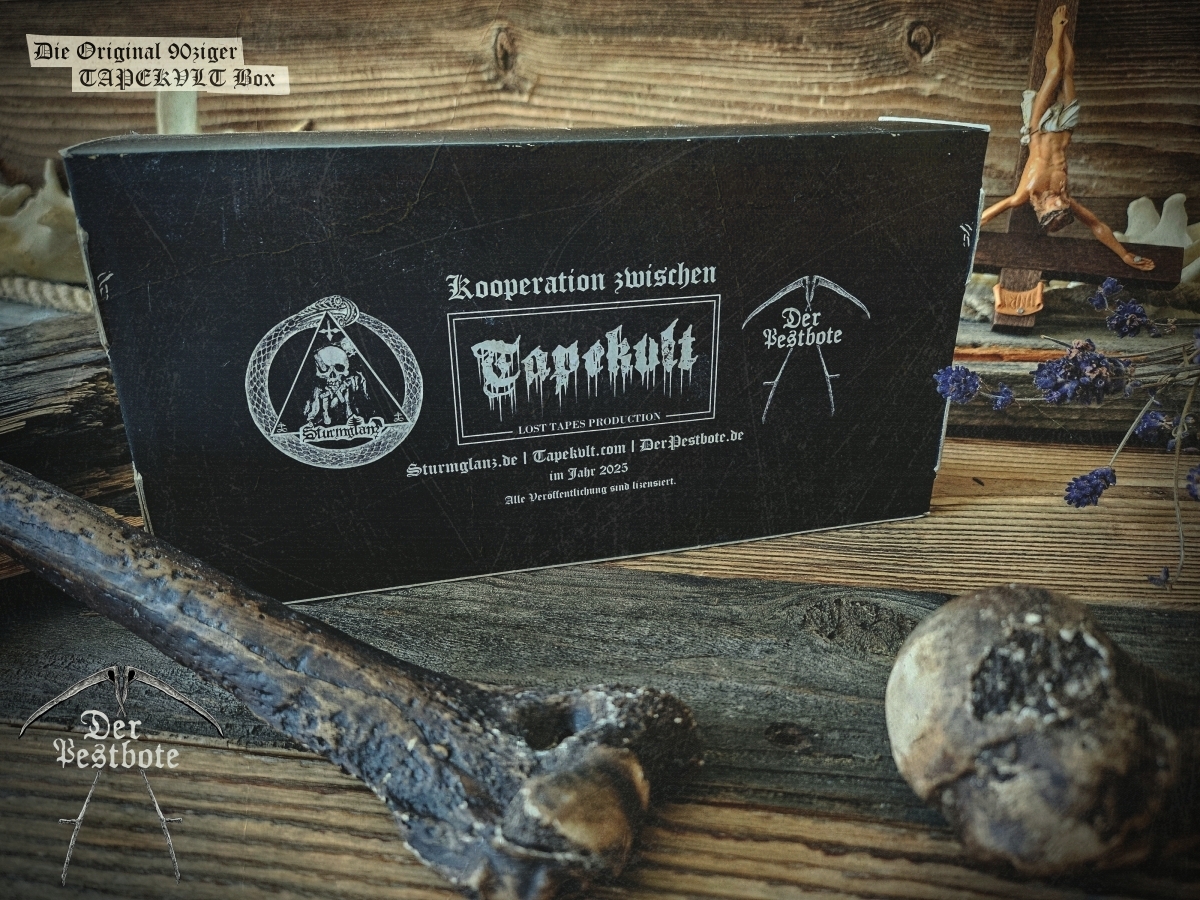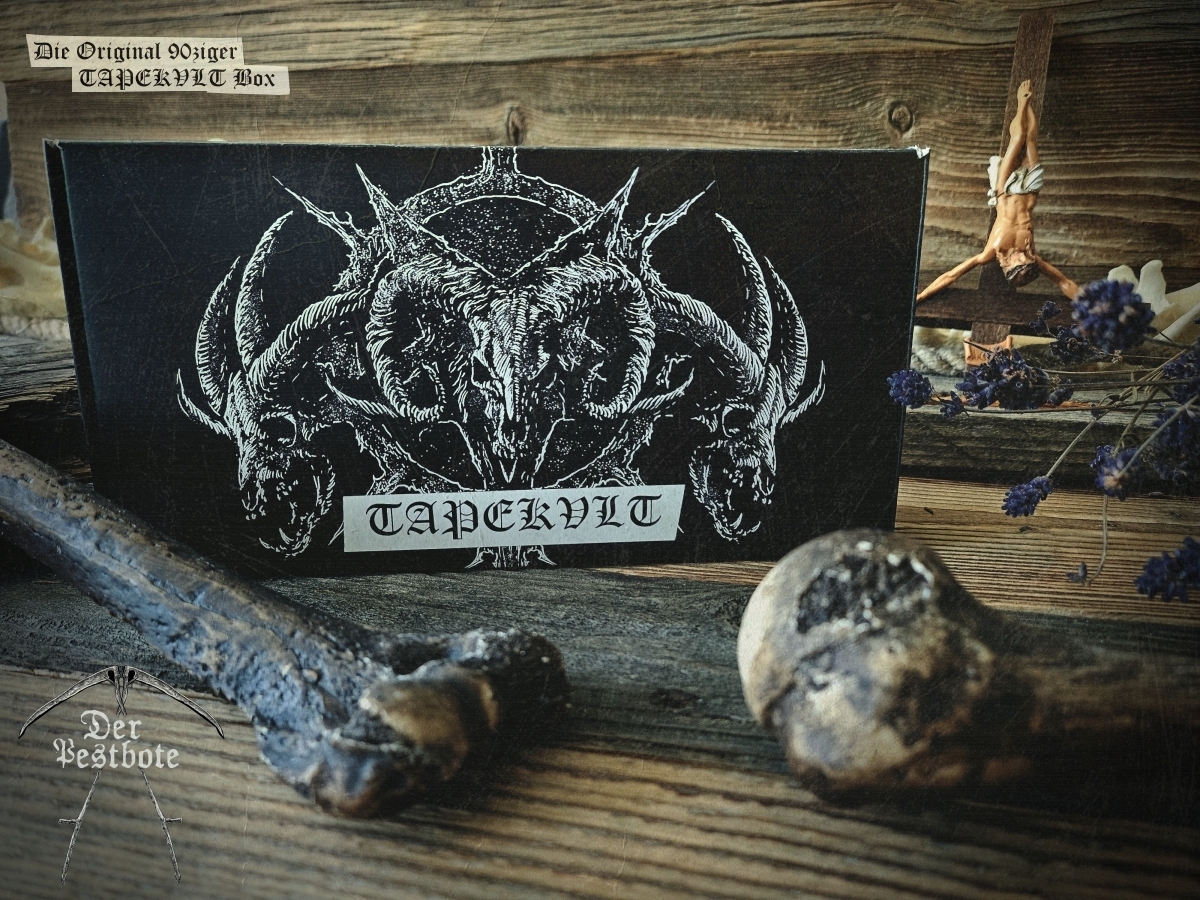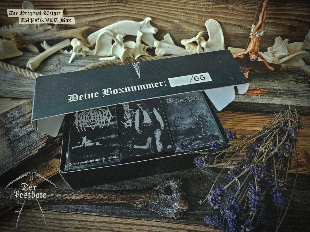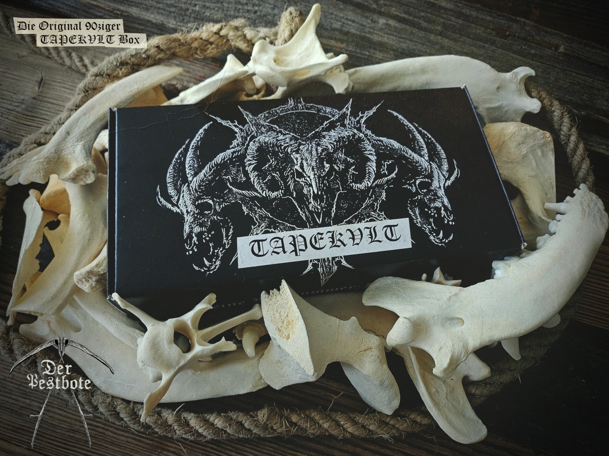 Die 90ziger Jahre sind zurück. Für die DER PESTBOTE Jubiläumsausgabe Nummer #10 gibt ein besonderes Spezial. Wir gehen zurück in die Vergangenheit und schwelgen in aufregenden und unvergesslichen Zeiten. Daher arbeiten wir an einer kleinen Tapebox mit Demos aus den 90ziger Jahren. Das Ganze ist limitiert auf 66 Stück. Wir wollen aber noch nicht so viel verraten. Es wird ein großartiges Zeitzeugnis und eine unglaubliche Reise der Erinnerungen in Zusammenarbeit mit TAPEKVLT – Lost Tapes Production. Die Tapebox wird es nur in Verbindung mit der DER PESTBOTE Ausgabe #10 geben. 33 Stück der Der Pestbote – TAPEKVLT Box Version III wird es als Verbindliche Vorbestellung (E-Mail: email@DerPestbote.de) geben und nur 33 Stück im regulären Shopverkauf.