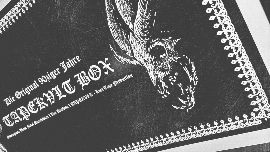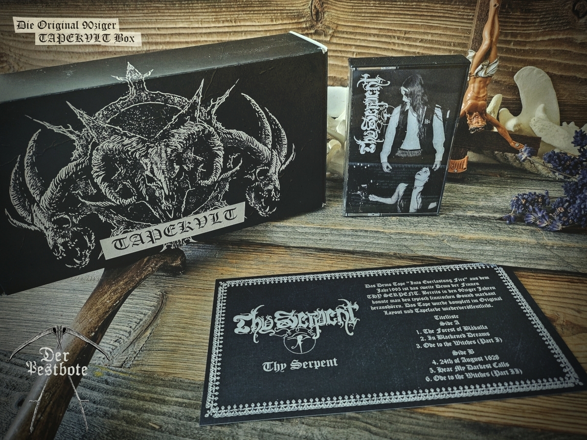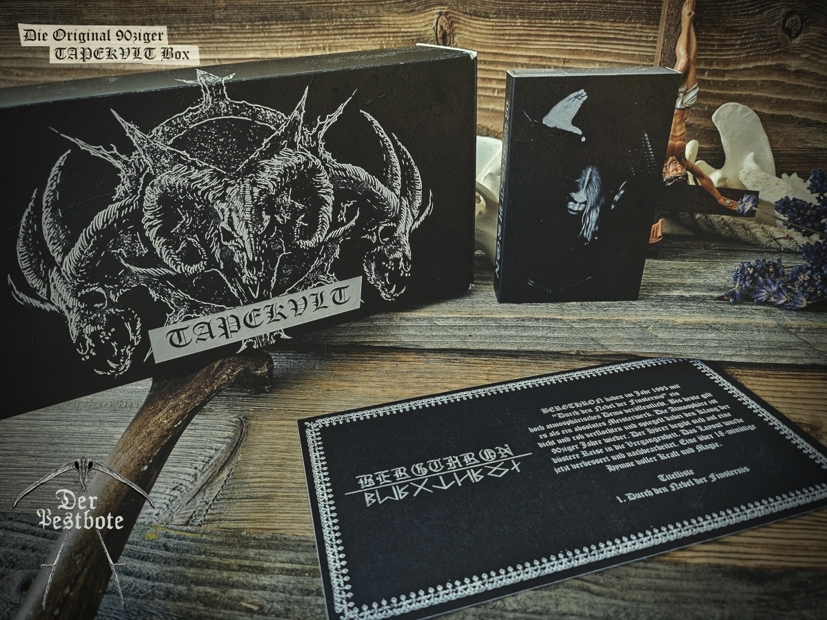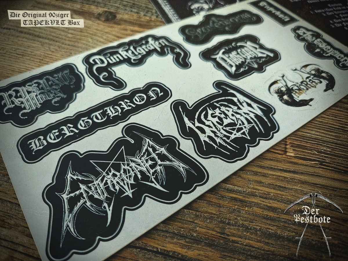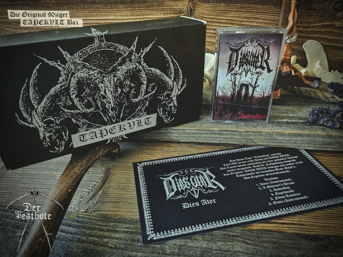Die 90ziger Jahre sind zurück. Für die DER PESTBOTE Jubiläumsausgabe Nummer #10 gibt ein besonderes Spezial. Wir gehen zurück in die Vergangenheit und schwelgen in aufregenden und unvergesslichen Zeiten. Daher arbeiten wir an einer kleinen Tapebox mit Demos aus den 90ziger Jahren. Das Ganze ist limitiert auf 66 Stück. Wir wollen aber noch nicht so viel verraten. Es wird ein großartiges Zeitzeugnis und eine unglaubliche Reise der Erinnerungen in Zusammenarbeit mit TAPEKVLT – Lost Tapes Production. Die Tapebox wird es nur in Verbindung mit der DER PESTBOTE Ausgabe #10 geben. 33 Stück der Der Pestbote – TAPEKVLT Box Version III wird es als Verbindliche Vorbestellung (E-Mail: email@DerPestbote.de) geben und nur 33 Stück im regulären Shopverkauf.