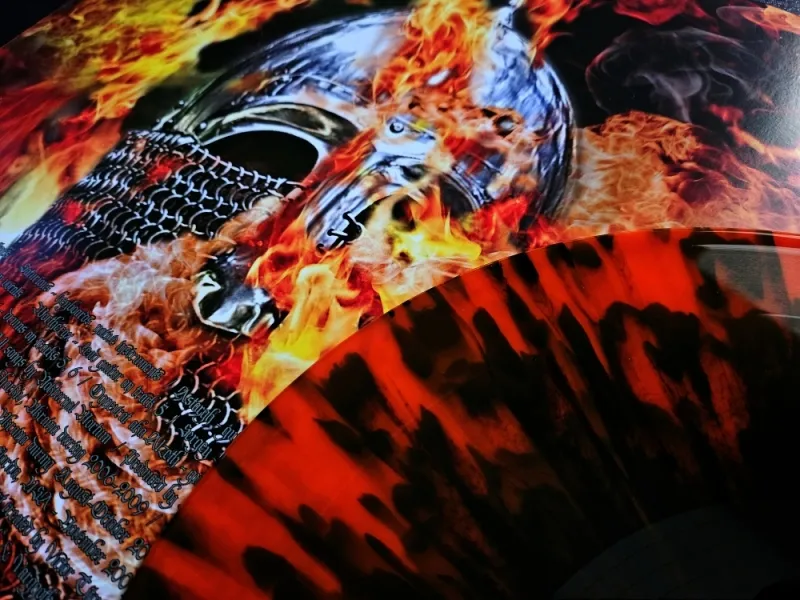 Re-issue, 994x heavyweight marble - orange crush/black 12" (180g) in a black poly-lined innerbag, poster A2 full-color on 150g art paper, gatefold full-color on 350g with gloss lamination, slipcase full-color, black flooded inside on 350g with gloss lamination, all assembled in a PVC overbag.